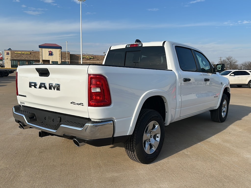 " Introducing the 2026 Ram 1500 Big Horn Crew Cab 4x4, an exceptional blend of rugged capability and sophisticated design. Finished in a striking bright white clearcoat exterior, this truck commands attention on and off the road. Inside, the spacious black interior offers comfort and modern features, making it ideal for both daily commutes and weekend adventures. Powered by a robust 5.7L V8 HEMI engine, this Ram 1500 delivers an impressive 395 horsepower, ensuring you have the strength needed for any task at hand. Equipped with advanced variable valve control and cylinder deactivation, this engine not only provides exceptional power but also optimized fuel efficiency, enabling you to tackle long journeys with confidence. With its 4x4 capability, the 2026 Ram 1500 Big Horn is engineered to handle various terrains, delivering a smooth and responsive ride regardless of the conditions. The 5'7"" box offers ample cargo space, making it a versatile choice for professionals and outdoor enthusiasts alike. Experience unmatched durability, performance, and style with the 2026 Ram 1500 Big Horn Crew Cab 4x4-your ultimate partner for work and play. "