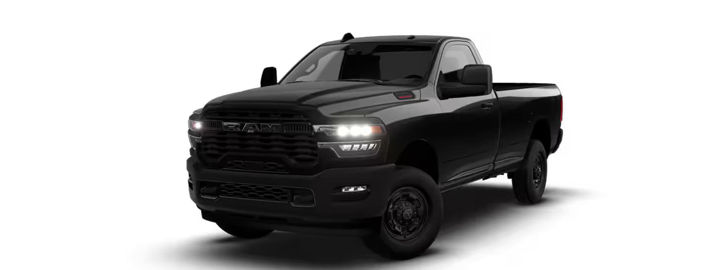 The foundation of the Ram 2500 lineup, the Tradesman offers rugged durability with vinyl upholstery, manual controls, and practical utility features. It is also the basis for two exclusive packages:Black Express Package – Adds body-color bumpers, a sport hood, 20-inch black wheels, and blacked-out badging for a custom look without the custom price.