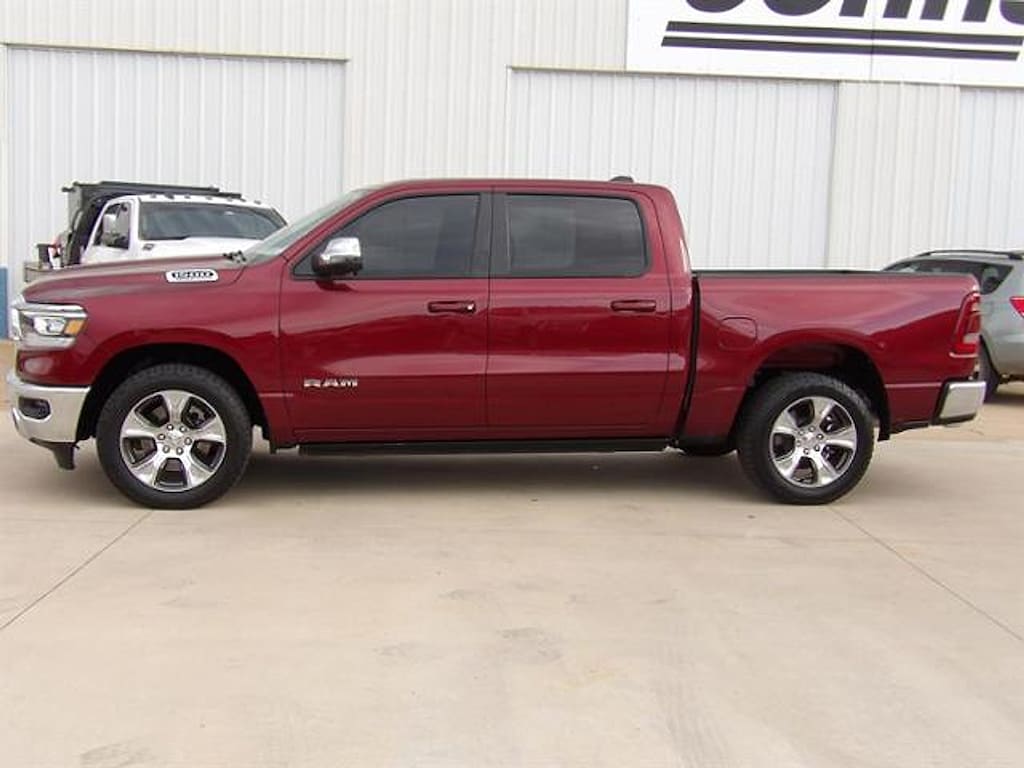 "Introducing the 2023 Ram 1500 Laramie 4x4 Crew Cab, a powerful and versatile truck that combines durability with modern luxury. With its striking red exterior, this pickup stands out in any setting, making a bold statement wherever the road takes you. Equipped with a robust 5.7L V8 engine, the Ram 1500 delivers impressive towing capacity and highway performance, ideal for both work and recreation. The spacious crew cab design comfortably seats up to five passengers, ensuring ample room for family, friends, or gear. Inside, the Laramie trim offers a refined interior featuring premium materials, advanced technology, and user-friendly infotainment options. Stay connected with intuitive navigation and entertainment systems, along with essential safety features to provide peace of mind on every journey. Additionally, the versatile 5'7"" box allows for efficient cargo management, making it a practical choice for adventurers and professionals alike. Experience the perfect blend of strength, luxury, and capability with the 2023 Ram 1500 Laramie 4x4 Crew Cab. Don't miss your chance to own this exceptional truck!"